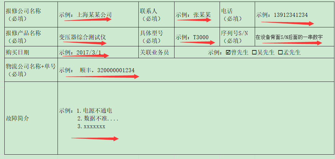 为了节省您的送修时间,请您务必仔细准确的填写以下信息,并牢记序列号,它是您查询维修进度的唯一编码,感谢您的支持与理解